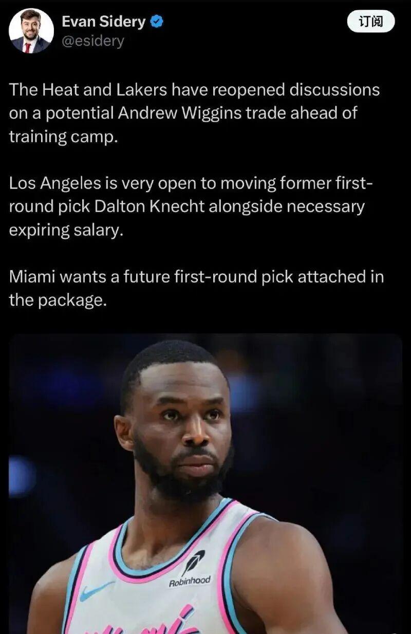 据美记Evan Sidery报道,热火和湖人已经在训练营来临之际重新展开了关于安德鲁-威金斯潜在交易的讨论。